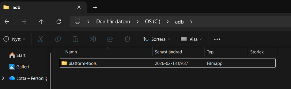 - Om du ändå stängde ner PowerShell tidigare så öppna den igen enligt Steg 5 och skriv in sökvägen till mappen platform-tools.