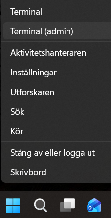 Steg 5 – Nu kommer vi till den roliga delen, installationen. Högerklicka på Start-knappen på aktivitetsfältet och välj Terminal (Admin är inte nödvändigt men fungerar också). Nu kan du använda PowerShell.